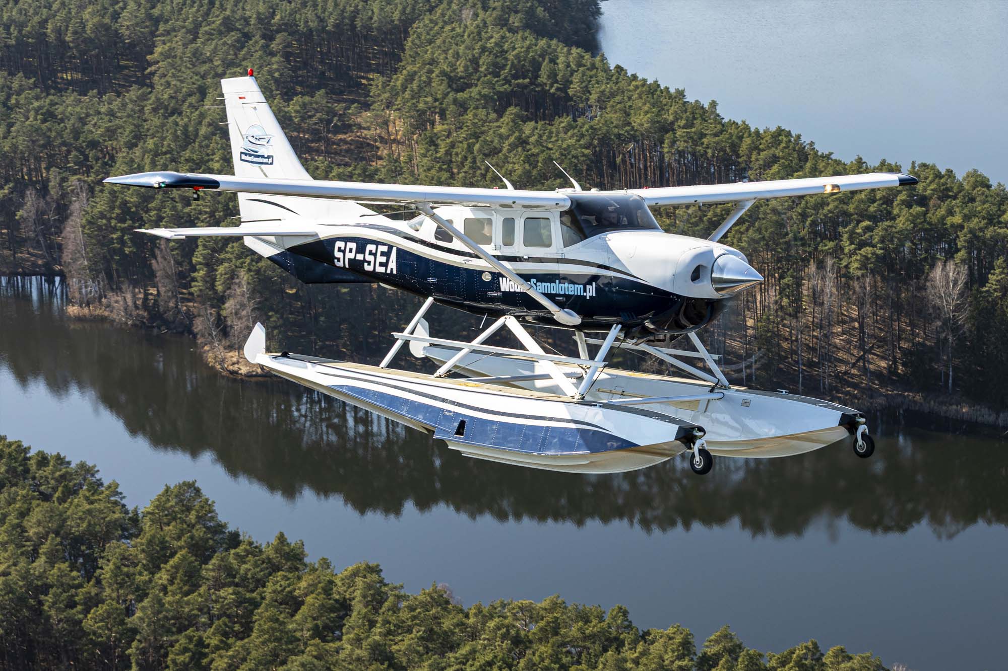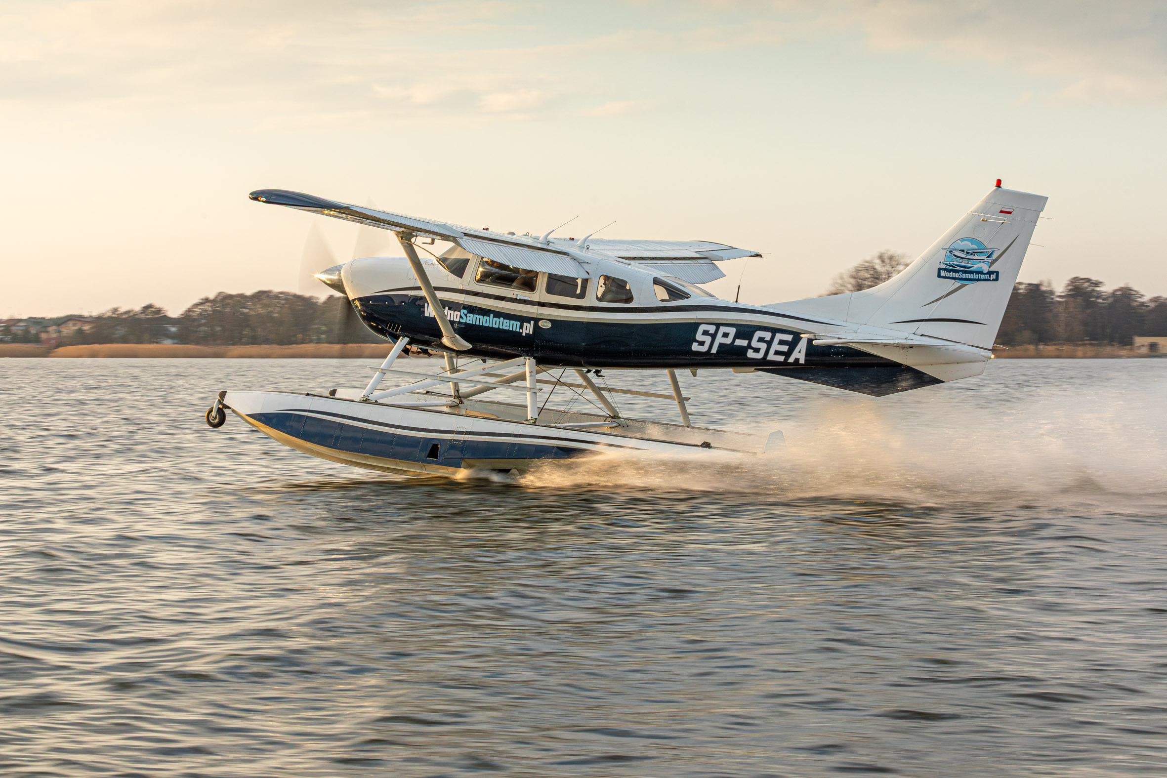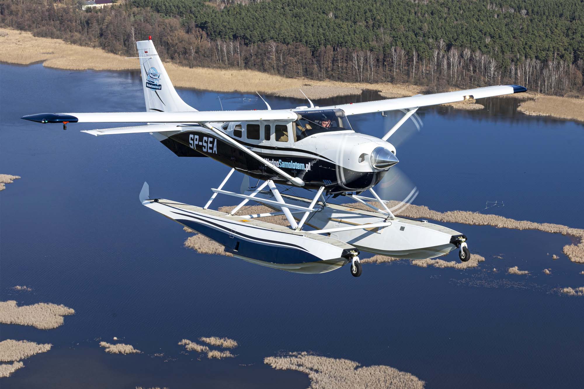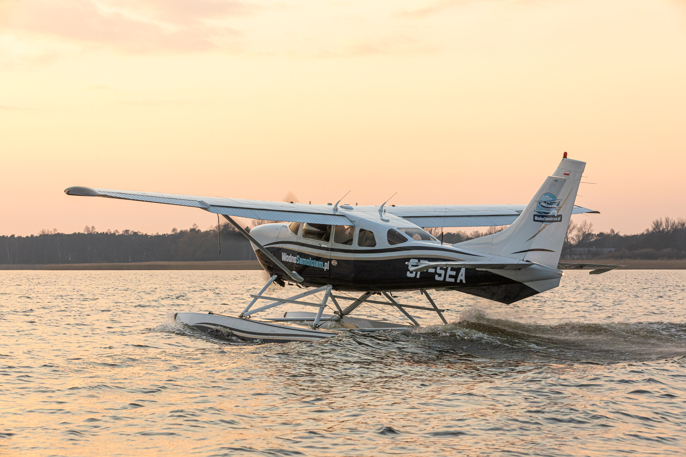 Samolot, który sprosta każdemu wyzwaniu. Dzięki specjalnym pływakom zamontowanym w miejscu standardowego podwozia, jest w stanie poderwać się w powietrze i wylądować za równo na wodzie, jak i zwykłym pasie lotniska.