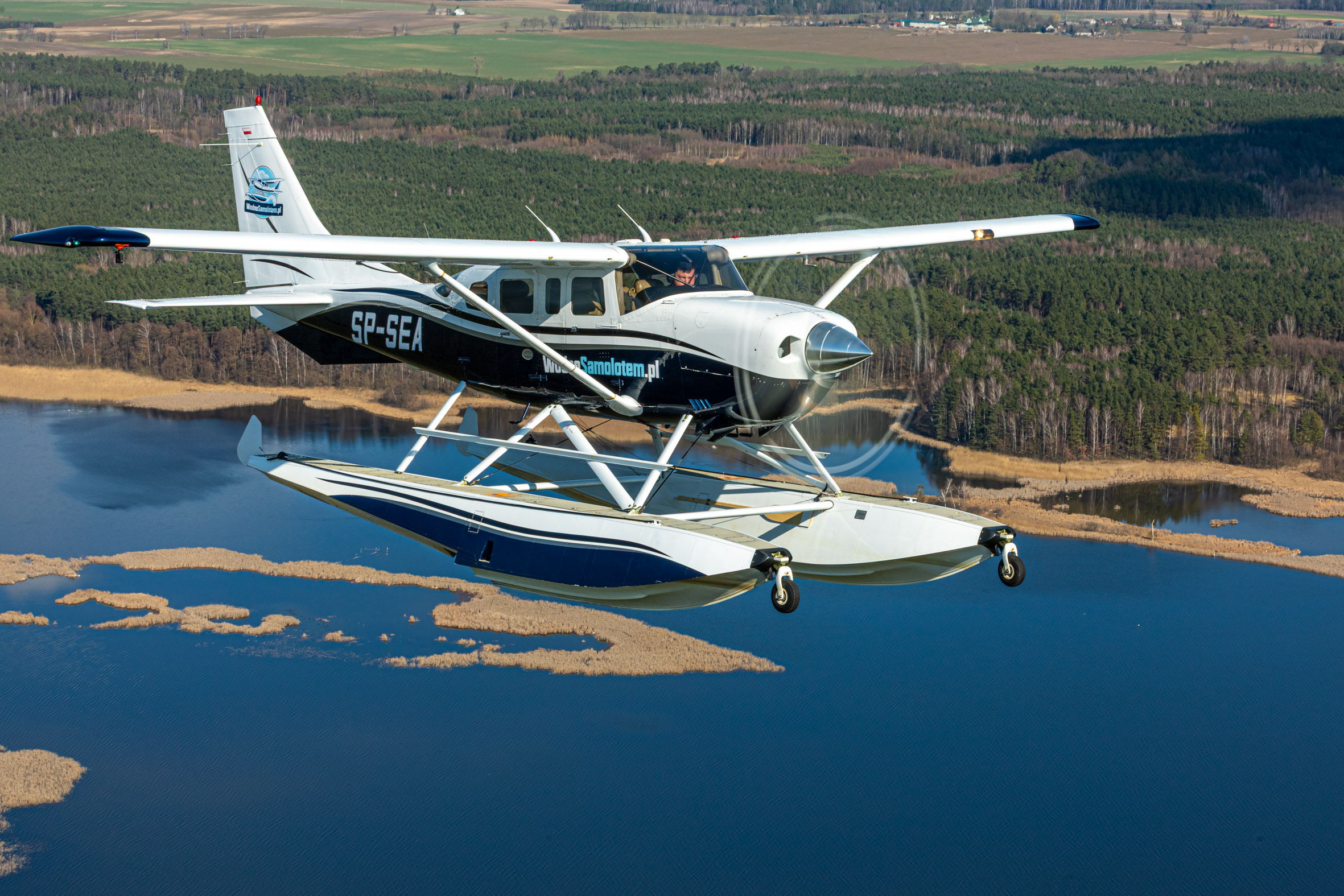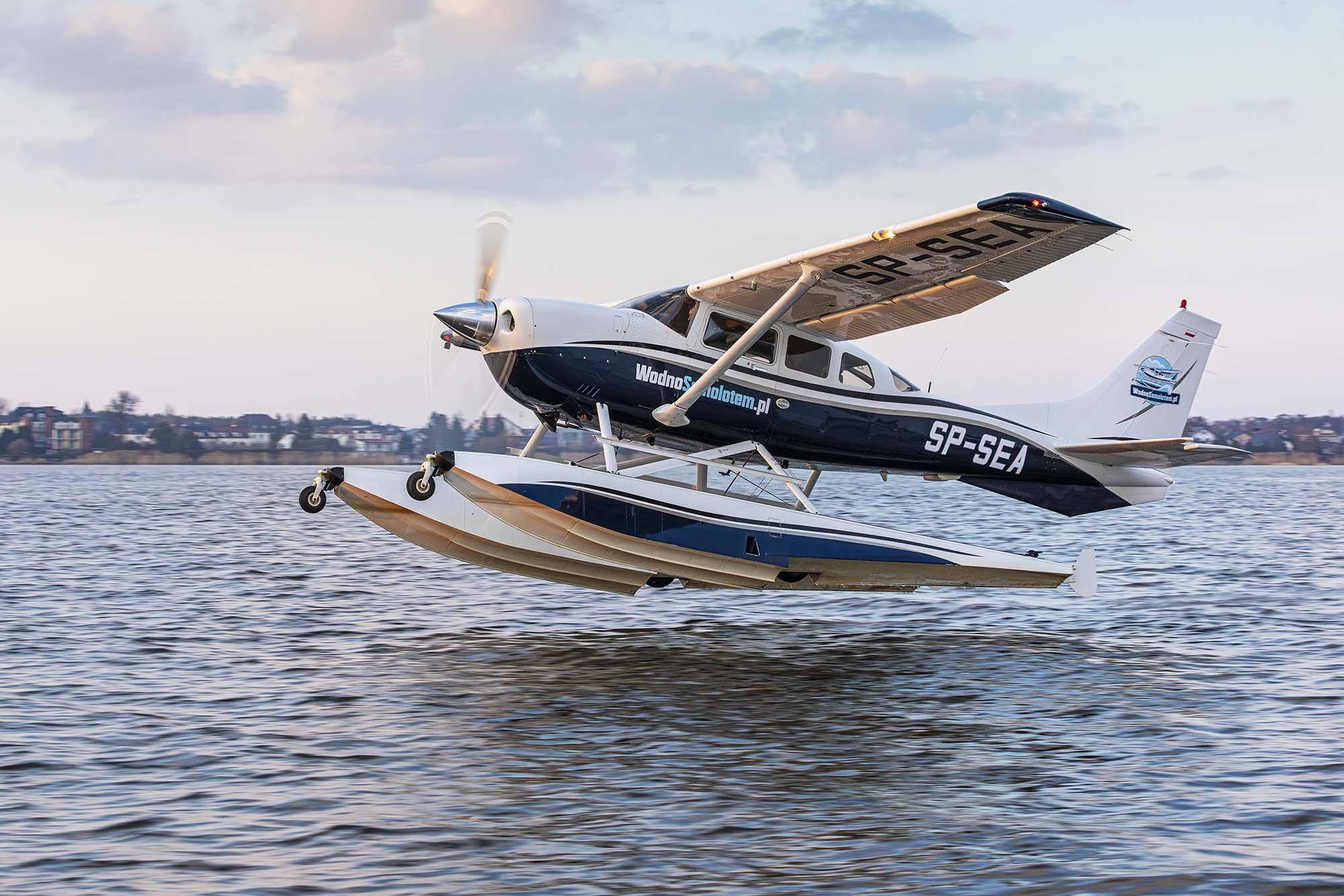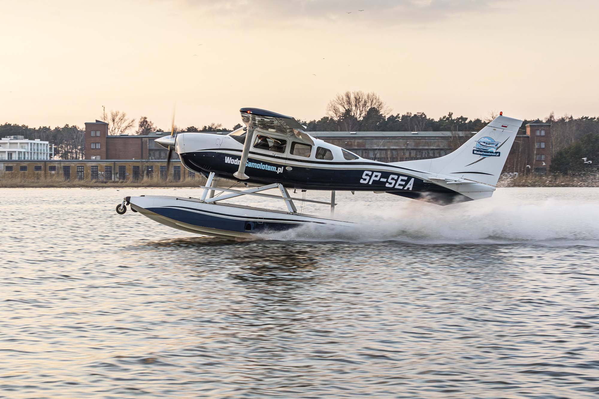 Samolot, który sprosta każdemu wyzwaniu. Dzięki specjalnym pływakom zamontowanym w miejscu standardowego podwozia, jest w stanie poderwać się w powietrze i wylądować za równo na wodzie, jak i zwykłym pasie lotniska.