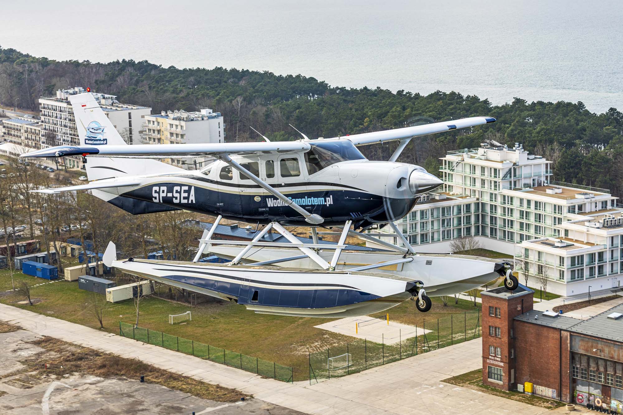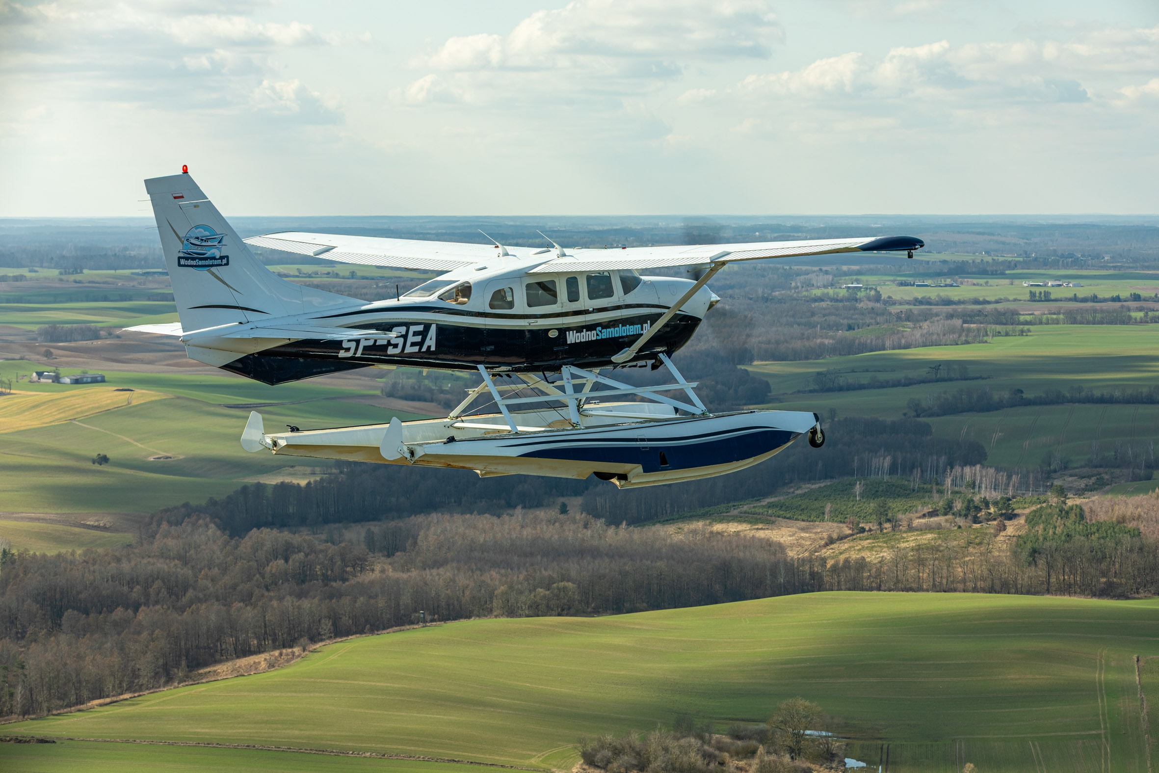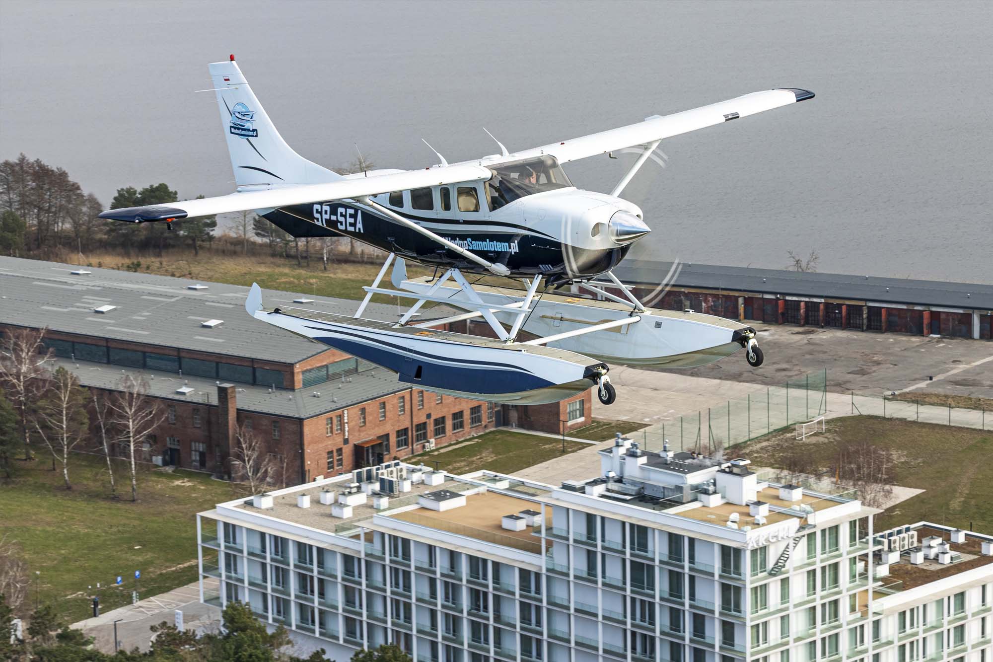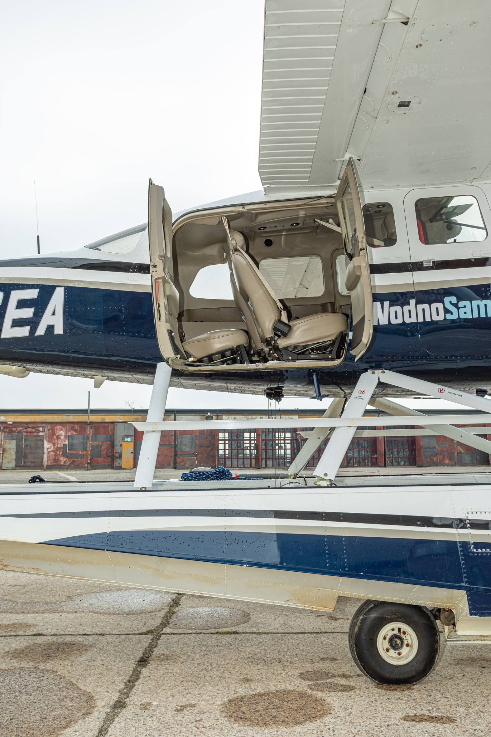 Samolot, który sprosta każdemu wyzwaniu. Dzięki specjalnym pływakom zamontowanym w miejscu standardowego podwozia, jest w stanie poderwać się w powietrze i wylądować za równo na wodzie, jak i zwykłym pasie lotniska.